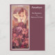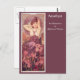 A fine art postcard with an Art Nouveau illustration by Alphonse Mucha (1860-1939), titled Amethyst. A woman with long hair against a purple background with pink irises in the foreground. Mucha's precious stones collection includes Topaz, Ruby, Amethyst and Emerald. The series is known for its typical Mucha qualities: beautiful women with suggestive gestures, decorative use of flowers, flowing hair, and subtle yet striking colors. These elements combine to create a compelling harmony intended to inspire and elevate the viewer.