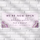 Amethyst Purple Glitter Agate Geode Luxe Now Open Business Banner. Perfect for makeup artists, hair stylists, cosmetologists, and more!