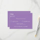 This RSVP card features a rich amethyst purple background with elegant white text. It includes clear response options—"Joyfully accept" or "Regretfully reject"—and a dedicated line for the total number of guests. The clean, modern layout ensures a high-end feel for your May wedding.