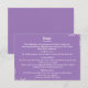 This Amethyst Elegance Details card features a rich purple background that perfectly coordinates with the Sofia and Adam wedding suite. The layout provides clear sections for reception, attire, accommodations, and website information, all rendered in clean white typography for easy reading. A delicate white leaf branch accent in the corner adds a touch of botanical charm to this sophisticated, modern design.