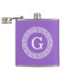 Amethyst Wht Greek Key Rnd Frame Initial Monogram Hip Flask