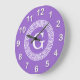 Amethyst Wht Greek Key Rnd Frame Initial Monogram Large Clock