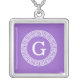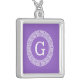 Amethyst Wht Greek Key Rnd Frame Initial Monogram Silver Plated Necklace