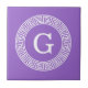 Amethyst Wht Greek Key Rnd Frame Initial Monogram Tile