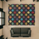 Amish Quilt Print Bright Colors on Black Patterned Rug