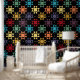 Give any room a homespun look. This peel and stick wallpaper is patterned to look like an Amish quilt with an Ohio Star quilt block print in red, purple, blue, yellow, gold, orange and green set against a black background. This large scale print will add bold color to your room.