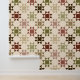 Give any room a homespun look. This peel and stick wallpaper is patterned to look like an Amish quilt with an Ohio Star quilt block print in shades of green, burgundy and mauve against a cream colored background.