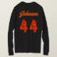 This womans long sleeve t-shirt showcases the words “My Heart Belongs To A Mustang” in a yellowtail print font with gold letters scarlet red outline with a heart and mustang in the center displaying the name "Johnson 44" on the back in this motivational sports theme AMMO Apparel USA style. This tee is comfortable, casual and loose fitting, made from 6.0 oz, pre-shrunk 100% cotton, with double-needle stitched bottom and sleeve hems for extra durability. Our tees fit and wears well on any and everyone.