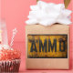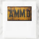 AMMO sticker in a weathered distressed metal sign style.