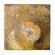 Photograph of a rock with lots of fossils and featureing a large fossilized ammonite.