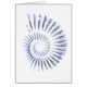 A minimalist, graphic and simple ammonite fossil motif in blue and white inspired by one found on the Jurassic coast.