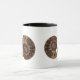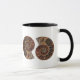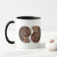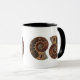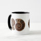 Photograph of ammonite fossils on customizable background color. Image on both sides of mug.