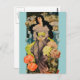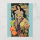 A black haired lady sits among the chrysanthemums. A vintage art nouveau print