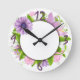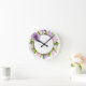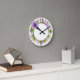 Lavender and pink flowers are featured in a circular pattern around the perimeter of this clock. The charm is in the simple, uncomplicated design. Easy to read numbers. This clock may be personalized with a name in the center at no additional charge.