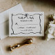 This chic and elegant wedding rsvp features a hand drawn, wavy illustrated frame with a bow, and stylish handwritten script for a Parisian or French style wedding response card. This classic color option is ivory and black.