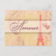 Soft subtle pastel colors of pink, peach and cream with Eiffel tower and two french hearts in the background and Amour in white script font. Perfect design for Paris France honeymooners, anniversaries, bon voyage or other special occasions. Great for anyone who loves France and the Eiffel tower.