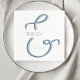 Simple, minimal, unique personalized dusty blue wedding napkins with modern calligraphy, monogram and trendy elegant ampersand.