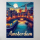 Experience the enchanting beauty of Amsterdam by night with our travel ad illustration. This captivating piece captures the city's iconic canals, illuminated by the warm glow of streetlights and reflections dancing on the water. Picture yourself strolling along historic bridges, enjoying the ambiance of cozy canal-side cafes, and feeling the magic of Amsterdam's nocturnal charm. Embark on a journey to the Netherlands, where every canal corner is a canvas of nighttime splendor.