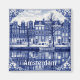 Amsterdam canal houses square fridge magnet in Delft Blue style. Generative content with photography by Velvet Escape.