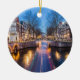 A view of the Amsterdam Canals at Night with the trail of boats going past