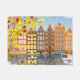 Amsterdam City Canal Autumn Colorful Door Mat. Amsterdam city view (canal, houses, boats and a branch of the autumn tree with falling leaves). Autumn color theme: yellow, orange, brown, blue.r