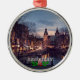 Amsterdam cityscape photograph at night with twinkling lights and Christmas holly.