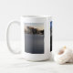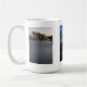 Souvenir mug of Amsterdam, with photos of canal houses, the stopera at the Amstel river, and the Groenburgwal with the Zuiderkerk church.