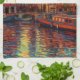 Infuse your culinary space with the warmth of a Dutch sunset. This designer kitchen towel serves as a fluid canvas for my "Golden Hour" Amsterdam cityscape, where the architectural gables are bathed in a rich, painterly glow. The vibrant contrast between the sun-drenched ochre buildings and the rhythmic teal ripples of the canal transforms a kitchen essential into a sophisticated decorative accent. Crafted for the home curator, it brings a soulful, European energy to the heart of the house, blending high-chroma art with everyday elegance.