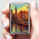 Ignite a moment of European inspiration. This designer lighter features a high-definition fragment of my "Golden Hour" series, where the architectural soul of Amsterdam meets the warmth of a setting sun. The high-chroma teals and coppers are rendered with striking clarity, turning a classic metal essential into a sophisticated, pocket-sized masterpiece. It is a bold, tactile statement for the collector who values heritage, durability, and the vibrant movement of Post-Impressionist light.