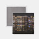 Souvenir photo magnet with traditional architecture canal houses with colorful lights and reflection in the water at night in the Red Light District in the city center of Amsterdam, the Netherlands.