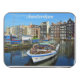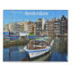 Beautiful Amsterdam panorama with colorful buildings and tour boat