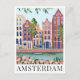 Amsterdam Lakeside Town View Travel Illustration Postcard