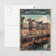 Explore the charm of Amsterdam with this vintage minimalistic postcard. Featuring iconic elements such as the city’s picturesque canals, historic gabled houses, and classic bicycles, the design uses clean lines and subtle hues to evoke a timeless elegance. Perfect for collectors, travelers, and fans of Amsterdam’s unique allure.