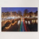 Beautiful nighttime Amsterdam waterways jigsaw puzzle. Fun for the whole family.