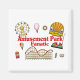 Featuring all things fun at the amusement park! A roller coaster, bumper cars, spinning ride, ferris wheel popcorn, cotton candy, soda pop, pretzel, arcade token, and colorful snow cone.