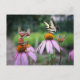 An acorn elf is taking a picture of a butterfly on a flower. - funny postcrossing postcard