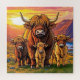 Immerse yourself in the enchanting world of nature with our vibrant jigsaw puzzle featuring an adorable Highland cow family. This charming illustration captures the essence of rural life, as a majestic adult Highland cow, adorned with long, curved horns and lustrous shaggy orange fur, lovingly stands alongside three playful calves of varying sizes. Set against a backdrop of a breathtaking countryside at sunset, the warm golden-orange hues envelop the scene, highlighting the lush rolling hills and a glimmering river that meanders through the landscape. Towering mountains in the distance provide a stunning contrast, enhancing the sense of tranquility. Perfect for puzzle lovers and nature enthusiasts alike, this captivating jigsaw puzzle not only offers hours of entertainment but also transforms into a beautiful piece of art that can be displayed in your home once completed.