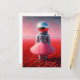 An astronaut in a tutu with a disco ball head stands in a poppy field