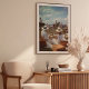 Step into a scene of bygone elegance with this captivating, vintage-inspired photograph. A stylish couple, dressed in crisp whites and classic boater hats, enjoys a sophisticated picnic on a sun-drenched field. With wicker baskets, fine food, and glasses of champagne, they represent a moment of pure leisure. In the background, a spirited polo match unfolds, complete with horses, fellow spectators, and a classic automobile, all contributing to the nostalgic, high-society atmosphere. This artwork, with its soft, cinematic color palette, is perfect for adding a touch of timeless romance and equestrian chic to your decor, celebrating the grand traditions of a perfect summer day.