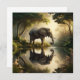 Elephant card. A pretty serene ai illustration of an elephant standing in the forest reflecting in the water. A calm tranquil piece of art to help you relax.