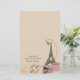 A pink background, along with the Eiffel Tower, a passport stamp of Paris France, a compass, and 2 vintage hat boxes with a pair of strappy sandals are the setting of this contemporary design. Check out our matching envelopes for this stationery!