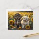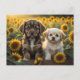 An image of two puppies in sunflowers field postcard