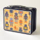 This is a standard metal lunchbox that appears to work just fine. We designed this box ourselves with an uploaded photo and custom text on the front and back. It looks absolutely beautiful except the front of the lunchbox is not centered like it shows in the photo. The print borders don't align with the inset flat part of the box where the preview photo online showed it perfectly centered in there. The back looks nice and centered though.