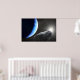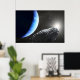 An artist's concept of Neptune's tiny moon Hippocamp that was discovered by the Hubble Space Telescope in 2013. Only 20 miles across, it may actually be a broken-off fragment from a much larger neighboring moon, Proteus, seen as a crescent in the background. This is the first evidence for a moon being an offshoot from a comet collision with a much larger parent body.