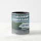 This pretty beach style mug features my original photograph of waves of an ocean, processed with a vector art technique for an illustrated animated style. I placed the words "I Coud Drink an Ocean of Coffee" on it for fun. It has a black color inside it and on the handle, which may be changed if desired. These are 11-ounce mugs, just the perfect size for your home brewed coffee or tea - or even hot chocolate! It would make a great gift and you can put packets of coffee, tea bags or hot chocolate inside. One other gift idea is putting a little plant in it to make it extra special for your loved one.