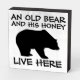 AN OLD BEAR AND HIS HONEY LIVE HERE BOX WOOD SIGN