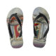 The flip flops arrived in a most colorful package which also had them double bagged in a black drawstring pouch which makes them great for gifting. They are a quality product with plenty of durability. The printing is vivid and true to that pictured on the web. Great look!