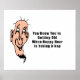 A funny long faced old man cartoon character with just a few hairs on his head and two teeth and smiling eyes with a long narrow beard. The text says "You Know You're Old When Happy Hour Is Taking A Nap"