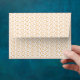 an orange and white background with swirls envelope