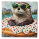 An Otter on Vacation in a Floating Donut Faux Canvas Print